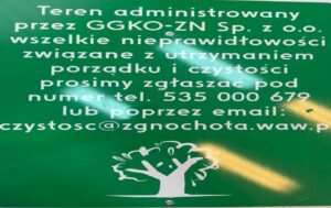 Budynki miejskie i tereny wokół nich są sprzątane w imieniu ZGN Ochota przez spółkę Gminna Gospodarka Komunalna Ochota (GGKO). Dlaczego tak się dzieje? W tym miejscu trochę odniesień historycznych. Spółka GGKO powstała jako pierwsza tego typu spółka w Warszawie w 1992 r. Zarządzała miejskim zasobem mieszkaniowym na Ochocie. Na mocy uchwały Rady Warszawy z 2004 r. od 1 stycznia 2005 r. rozpoczął swoją działalność ZGN Ochota. Wtedy, właśnie zaczęły funkcjonować ZGN-y w większości warszawskich dzielnic. Umowa między innymi na sprzątanie budynków miejskich i terenów wokół nich została, niejako, „odziedziczona” przez ochocki ZGN i tak to trwa do dzisiaj.