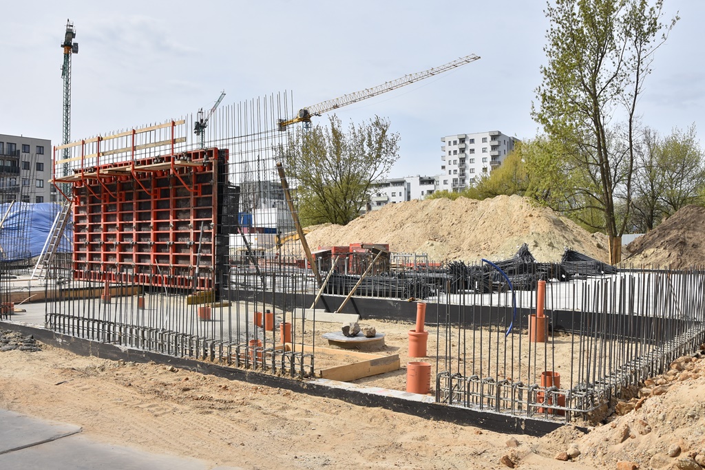 Na budowie szkoły podstawowej przy ul. Karlińskiego praca idzie pełną parą. Wykonane zostały już wykopy pod fundamenty, trwają roboty żelbetowe. Szkołę buduje firma Mirbud S.A., a Dzielnica na ten cel przeznaczy ponad 37,6 mln zł.