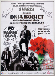Plakat z koncertu zespołu „Poparzeni Kawą Trzy”, który na Żoliborzu w ubiegłym roku zorganizował Urząd Dzielnicy Żoliborz m.st. Warszawy jest do wylicytowania na aukcji Wielkiej Orkiestry Świątecznej Pomocy. Plakat z autografami wszystkich członków zespołu przekazał przewodniczący Rady Dzielnicy – Piotr Wertenstein- Żuławski. Orkiestra zagra 31 stycznia2021 roku już po raz 29.