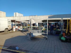 Burmistrz Dorota Stegienka powiedziała: – Chcemy zrobić zadaszenie w celu poprawienia warunków do handlu, a jednocześnie organizacji w tym miejscu wydarzeń przez cały rok, bez względu na aurę. Przykładowo cieszące się dużą popularnością tzw. wyprzedaże garażowe.